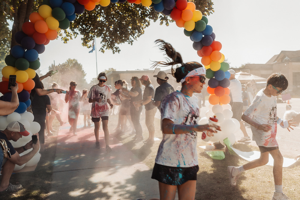 Middle School is color blasted through the balloon arch at Jog A Thon 2025PrizesThe grade level that ran the most total laps - 2nd/3rd for elementary, 8th grade for middle school